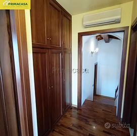Proponiamo recente porzione di bifamiliare posizionata in tranquilla zona residenziale a pochi passi dal centro del paese e comoda ai principali servizi. L'abitazione è così composta: al piano terra troviamo un ampio soggiorno collegato alla cucina abitabile ed un bagno di servizio per gli ospiti. Al piano superiore si trova il reparto notte composto da disimpegno, due bagni finestrati, tre ampie camere di cui una con cabina armadio e due pratici poggioli. Al piano interrato troviamo una taverna di 60mq ideale per trascorrere del tempo in famiglia grazie al comodo angolo cottura con camino per la pizza, un sottoscala ad uso ripostiglio, un bagno/vano tecnico, un ulteriore stanza/magazzino e il garage. Completano l'immobile due porticati esterni, un posto auto e il giardino privato. RIF 74