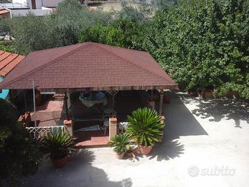 Ampia corte esterna con tettoie e barbeque attrezzato, importante riserva idrica di 90 metri cubi.