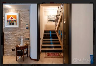 Contrada Porticone a Termoli proponiamo in vendita Porzione di villetta bifamiliare. La soluzione, che si snoda su più livelli comprende anche un giardino e relativa piscina. La taverna presenta un ampio open space con zona living, cucina e camino. Sono presenti sullo stesso livello anche camera matrimoniale, cameretta, bagno e ripostiglio. Al primo piano si trovano una camera matrimoniale, uno studio ed un bagno. Il piano rialzato invece è composto da un'ampia zona living con cucina, una camera da letto con relativa cabina armadio, due camere da letto standard, bagno e studio. La villa è dotata di impianto di condizionamento separato per zona, video allarme e caldaia di nuova generazione. La villa arredata con gusto e raffinatezza, si vende completa di arredi. La trattativa è riservata.