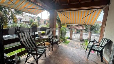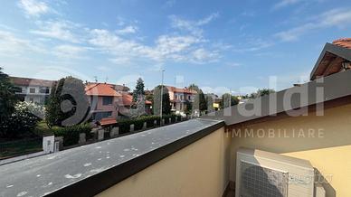ALBAIRATE: IN ESCLUSIVA, nelle immediate vicinanze del centro, disponiamo di splendida porzione di villa bifamigliare che offre 200 mq di spazio abitabile ed è composta da 4 locali così suddivisi al P.T. troviamo l'ingresso, un ampio soggiorno con camino ventilato, la cucina abitabile che si apre sulla sala e collegata al terrazzino di mq. 15 ca. coperto con tende da sole ideale per momenti di relax e gustare ottimi pranzi o cene in compagnia, disimpegno, camera da letto con cabina armadio e bagno dotato di vasca e doccia idromassaggio. Scala in muratura che accompagna al P.1. composto da 2 camere da letto spaziose entrambe dotate di cabina armadio e sottotetto, bagno con doccia idromassaggio e terrazzino esposto a sud di mq. 12 ca. Seconda scala interna a cui si accede al P.S1 con la taverna finestrata di mq. 50 dotata di luce, acqua, gas e riscaldamento con secondo accesso direttamente dal giardino tramite porta blindata e locale termico, box doppio di mq. 51 ca. con basculante elettrica sezionale e giardino libero sui 3 lati dotato di fontana per acqua.