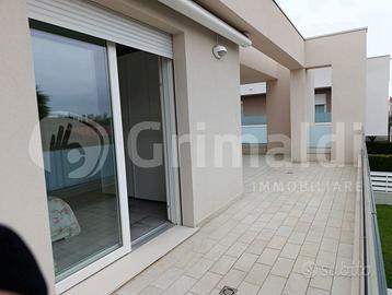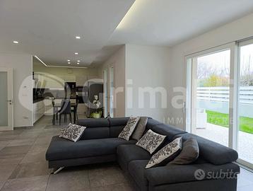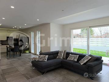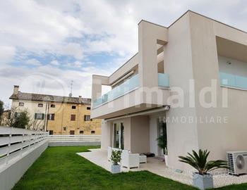 ALBIGNASEGO - MANDRIOLA. Elegante porzione di bifamiliare del 2017 in classe A4 con cortile esclusivo di circa mq. 300 su tre lati. Ingresso, ampio soggiorno - pranzo e cucina a vista entrambi con uscita sul giardino, terrazzi con loggia di circa mq. 52, zona notte con 3 belle camere da letto ed in particolare una matrimoniale con cabina armadi e bagno finestrato, altri due bagni. Piano terra garage di mq. 21. Terrazzi con parapetti in vetro, impianto di aspirazione centralizzato, avvolgibili motorizzati, zanzariere, doppio citofono, impianto fotovoltaico, riscaldamento a pavimento. Arredo parziale. ape 26,56 CL. A4
