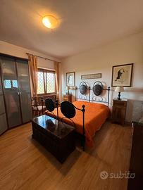 Villa bifamiliare semiarredata - Aprilia in contesto riservato e tranquillo di Via Apriliana ben collegata con stazione ferroviaria di Aprilia e Campoleone a 10 minuti dal mare e 25 minuti dall'Eur. La villa si compone di: Piano rialzato 150,00 mq soggiorno con termocamino, cucina con balcone, disimpegno, bagno, camera con bagno riservato, corridoio con altra cameretta, camera studio/sala relax, altra camera, due terrazzini di cui uno all'ingresso; Piano seminterrato 90,00 mq open space ben areato e luminoso, con cantina e garage di 20,00 mq. Completa la proprietà giardino esclusivo di 170 mq. Per l'ampia metratura e la sua composizione, la villa si presta ad essere divisa anche in due appartamenti.