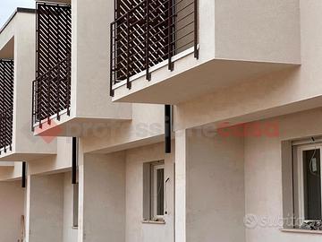 Proponiamo in vendita una villa a schiera di nuova costruzione composta da ingresso, soggiorno, cucina ad angolo sotto finestra con uscita sul giardino, bagno e ripostiglio, al piano superiore, tre camere ,bagno e balconi. Giardino esclusivo e cortile per rimessa auto.