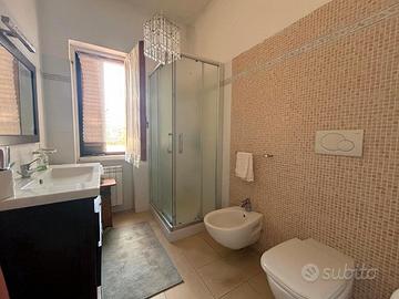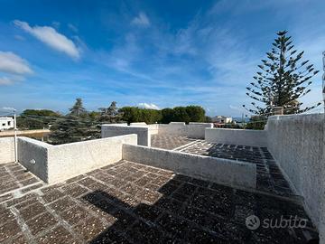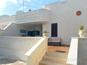 A pochi passi dalle splendide spiagge del Capitolo, in una tranquilla zona residenziale, proponiamo in vendita una villa bifamiliare su due livelli con vista mare. L'immobile, accessibile sia da cancello elettrico carrabile che da cancello pedonale tramite stradina privata, è circondato da un terreno di 2000 mq con pini e ulivi, e dispone di un ampio piazzale in parte pavimentato in chianche e in parte a giardino, ideale anche come zona parcheggio. La villa offre tre comode verande, oltre a una terrazza con suggestiva vista sul mare e sulle colline. Al piano rialzato, di 127 mq catastali, si accede direttamente in una luminosa zona living open-space con soggiorno-pranzo e cucina a vista, da cui si diramano due disimpegni che conducono a quattro camere da letto e due bagni. Il piano seminterrato, di 98 mq, è composto da un ampio soggiorno con camino, cucina abitabile in muratura, grande camera matrimoniale e bagno. L'abitazione è dotata di tutti i comfort: impianto termoautonomo con GPL e termocamino, aria condizionata, videocitofono, antifurto, infissi in PVC con doppio vetro, zanzariere e persiane. È presente un pozzo per la riserva idrica e una fossa Imhoff a norma. Completa la proprietà la possibilità di realizzare una piscina.