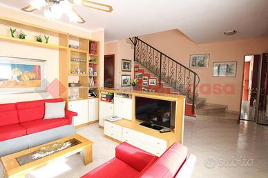 Basiano, in contesto di sole ville, porzione di villa bifamiliare su più livelli con giardino, taverna e autorimessa. Piano terra con ampio e luminoso soggiorno, cucina abitabile, disimpegno e bagno di servizio, comoda scala che porta al piano primo con camera matrimoniale (con balcone), altre due camere da letto (una con balcone) e bagno. Taverna con lavanderia e accesso diretto all'autorimessa. Giardino privato su tre lati con impianto di irrigazione. Termoautonomo, infissi legno doppio vetro, impianto d'allarme, aria condizionata nella camera principale, tende da sole. Classe Energetica - in corso