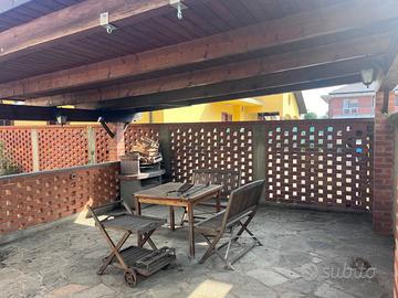 Beinasco: in zona tranquilla di sole villette, circondata dal verde e dalla tranquillità ma al tempo stesso comoda all'ingresso della tangenziale e a pochi passi dal centro del paese, la Grimaldi Immobiliare di Beinasco propone in vendita villa trifamiliare disposta su 3 livelli, libera sui quattro lati con giardino circostante. Tramite il portoncino di ingresso accediamo alla scala comune che conduce ai vari piani, il piano rialzato ed il primo piano sono completamente indipendenti fra loro, ma hanno la stessa metratura e suddivisione degli spazi: ingresso , soggiorno, cucina abitabile, due camere e bagno dotato di doccia. Dalla zona giorno del piano rialzato vi è l'uscita sul balcone collegato direttamente al giardino tramite comoda scala in muratura. Il piano mansardato, completamente indipendente dagli altri due, è caratterizzato da ingresso su soggiorno con cucina a vista, camera, bagno e due ripostigli ed è dotato di finestre e serrande.
