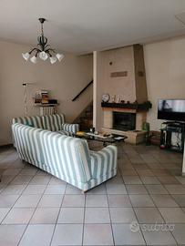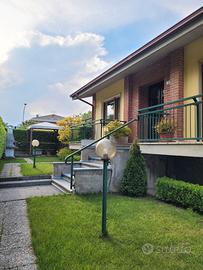 Porzione di Villa Bifamiliare in ottimo stato su 3 livelli. Piano rialzato con Cucina e Sala con 2 balconi, disimpegno con accesso a Studio e Camera Matrimoniale con balcone, Bagno, ripostiglio e ampia Camera Singola. Accesso dalla Sala al primo piano dotato di Camera Matrimoniale, Bagno e Studio. Al piano seminterrato Ampio Garage Doppio con Bagno a cui si accede da scala interna. Giardino con zona barbucue e pergolato.