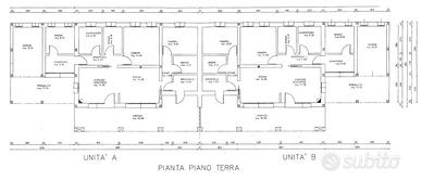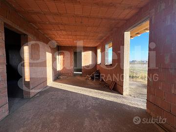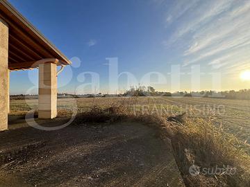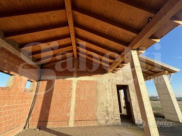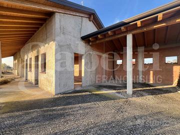 BRUGINE, Loc. CAMPAGNOLA, in zona rurale poco distante dal paese, si propone in vendita bifamiliare intera di solo piano terra allo stato grezzo con lotto di pertinenza di ca 3400mq. La costruzione si presenta con struttura portante in laterizio e CLS, copertura a due falde con travatura in legno a vista nel portico e nel sottotetto. Soluzione ideale per 2 unità abitative o per villa singola tutta su un piano. Vendita in blocco.