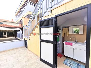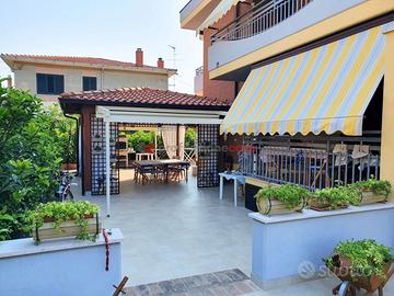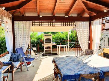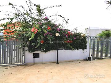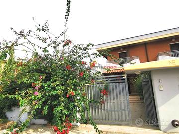 In zona centralissima, a poche centinaia di metri dal mare, proponiamo in vendita una splendida VILLA BIFAMILIARE (costruzione 2010) disposta su due livelli, per complessivi cinque vani, doppi servizi ed un ampio giardino privato di oltre 200 mq. La proprietà gode di due ingressi indipendenti e di due cancelli (di cui uno automatizzato) che consentono di parcheggiare all'interno fino a cinque auto.