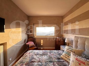 Fossone - In contesto riservato e panoramico, proponiamo in vendita elegante porzione di villa bifamiliare con vista mare, giardino privato e tre posti auto. La proprietà è valorizzata da un curato giardino privato, arricchito da area barbecue e spazio dedicato a pranzi e cene all'aperto, oltre a due ulteriori piane di giardino che garantiscono versatilità e ulteriore vivibilità degli spazi esterni. L'immobile si sviluppa su due livelli e si distingue per l'ottima distribuzione degli spazi e la luminosità degli ambienti. Al piano d'ingresso si sviluppa l'intera zona giorno. La cucina a vista con penisola si integra armoniosamente con la sala da pranzo, creando un ambiente moderno e conviviale. Il soggiorno è accogliente e gode di accesso diretto alla terrazza di circa 36 mq con suggestiva vista mare. Completa il piano un comodo ripostiglio. Il piano superiore ospita una spaziosa suite matrimoniale dotata di cabina armadio, accesso al terrazzo e bagno privato finestrato con vasca idromassaggio. La zona notte si completa con due ulteriori camere da letto e un bagno finestrato con doccia. Soluzione ideale per chi è alla ricerca di un'abitazione di pregio, in posizione tranquilla e con piacevoli affacci panoramici.