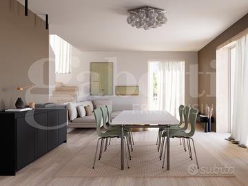 L'ampio open space al piano terra unisce soggiorno, sala da pranzo e cucina in un unico ambiente luminoso e accogliente.