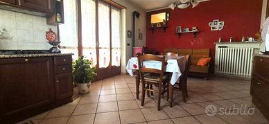 A pochi passi dal centro del paese proponiamo in vendita villa bifamiliare indipendente sui 4 lati con giardino privato di 1300 (possibilità di acquistare a parte ulteriori 2700 mq di terreno a 20.000 euro). L'immobile è disposto su 2 livelli più piano interrato e attualmente è diviso in 2 appartamenti. Il primo appartamento si trova al piano terreno ed è privo di barriere architettoniche composto da soggiorno living, cucina abitabile, disimpegno, camera matrimoniale e cameretta. Al piano superiore collegato da scala interna con un suo accesso indipendente troviamo la seconda unità abitativa completamente ristrutturata nel 2005 composta da soggiorno con camino a legna, ampia cucina abitabile con sfogo sul terrazzo con vista sulla rocca di Cavour, 2 camere da letto, disimpegno, bagno e ripostiglio. Vi è inoltre un piano mansardato (collegato da scala interna) già piastrellato e rifinito con possibilità di recuperare una stanza con cabina armadi e un bagno/lavanderia.