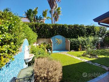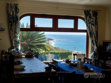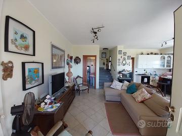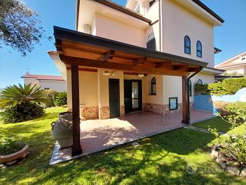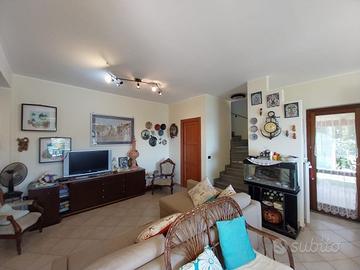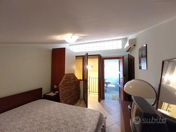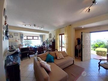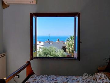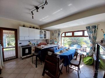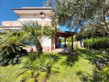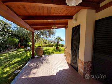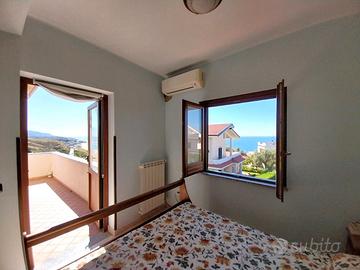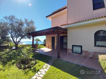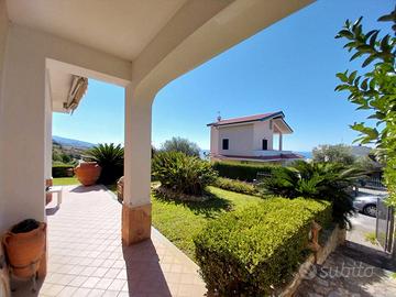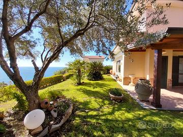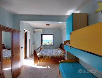 al piano terra troviamo ampio salone con angolo cottura, bagno, tre portici (per un totale di circa 35 mq), ampio giardino con vista mare; al primo piano sono presenti due grandi camere, bagno e terrazzo vista mare mentre al secondo piano troviamo un'ampia camera, bagno, ripostiglio e terrazzo panoramico.