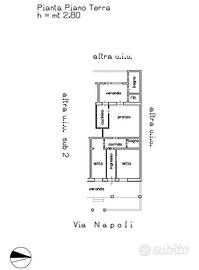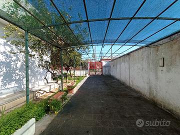 Pulsano, in Via Napoli n. 6, traversa di Via Taranto una delle strade principali di ingresso al paese, proponiamo in vendita villa bifamiliare su unico livello, ubicata su un lotto di terreno di mq 500 circa, libera su tre lati, e completa sia di giardino che di box auto. Attualmente è costituita da n. 2 appartamenti, al piano terra, potenzialmente unificabili per generare un'unica grande abitazione. Lungo la recinzione esterna prospiciente Via Napoli ci sono due cancelli, uno pedonale ed uno carrabile, lo spazio esterno è in parte lastricato in cemento e in parte lasciato a giardino con alberi da frutta e piante ornamentali. In corrispondenza del cancello carrabile è posto il garage. I due appartamenti hanno ingressi indipendenti e ad essi si accede da un ampio porticato che affaccia sulla strada. L'appartamento a dx è composto da: ingresso, 2 vani, soggiorno/pranzo con camino, cucinino, veranda, bagno e 2 ripostigli. L'appartamento a sx è composto da: vano d'ingresso, camera da letto, soggiorno/pranzo, cucinino, bagno, disimpegno e deposito. I due appartamenti sono dotati dei seguenti impianti: idrico/fognante, elettrico, gas metano e riscaldamento. La zona è servita da negozi di vario genere (supermercato, macelleria, ottica, panificio, ecc. ) e la fermata dell'autobus è nelle immediate vicinanze.