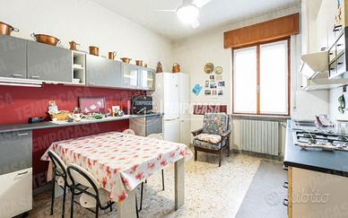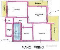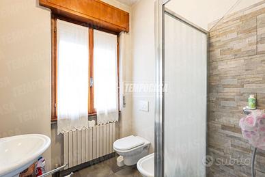 Al primo piano si trova un ampio trilocale, caratterizzato da una luminosa zona giorno con cucina abitabile e una sala da pranzo separata, da cui accedere a un ampio terrazzo di 36 mq, adatto a momenti di relax o per mangiare fuori, oltre che la zona notte con due ampie camere matrimoniali.