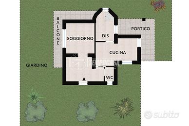 Piano terra: zona giorno accogliente e luminosa con affaccio sul giardino, cucina abitabile, bagno di servizio.