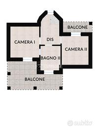 Primo piano: due camere, una con affaccio sul balcone, l'altra con affaccio su un terrazzo, un bagno finestrato.