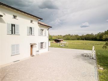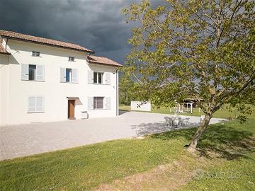 Fidenza - Villa bifamiliare circondata da 5.000 mq. di terreno. La località è San Faustino, zona residenziale di Fidenza distante circa un chilometro dal centro cittadino. La casa è circondata da verde e boschi: posizione perfetta per coloro che amano vivere vicino al verde senza rinunciare alle comodità della città. Le piste ciclabili che dalla villa conducono al centro di Fidenza offrono un accesso diretto, conveniente e comodo alle attrazioni della città. Questo significa che tutti in famiglia possono raggiungere rapidamente il centro storico, i negozi, i supermercati, i ristoranti e altri servizi senza dover utilizzare l'auto.