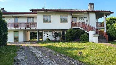 La prima unità (CASA 1) si trova al PIANO TERRA, costruzione degli anni '70, è composta da ingresso indipendente, soggiorno, cucina con ripostiglio, camera matrimoniale, studio, disimpegno e bagno. Secondo cucinino e cantina. Abitazione in buone condizioni, parzialmente da ristrutturare o ammodernare. APE classe energetica G EP gl,nren 244,72. La seconda unità immobiliare (CASA 2), più recente, anni '90, sviluppata principalmente al PRIMO PIANO. Ingresso con disimpegno, cucina abitabile e grande luminoso salone soggiorno dal quale si accede a una terrazza coperta di generose dimensioni, perfetta per godere di pranzi all'aperto o semplicemente per rilassarsi. La zona notte è composta da tre camere spaziose, ideali per accogliere tutta la famiglia. Inoltre, la casa dispone di due bagni e due ampie stanze finestrate, versatili per diversi utilizzi come studio, cameretta per gli ospiti o cabina armadio. Non dimenticare la meravigliosa TAVERNA al piano terra, un luogo perfetto per feste e riunioni con amici. Abitabile da subito e climatizzata. APE classe energetica E gl, nren 190,79.