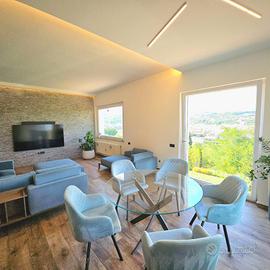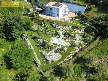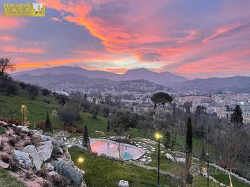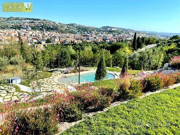 IN VENDITA VILLA BIFAMILIARE PANORAMICA con PISCINA suddivisa in DUE APPARTAMENTI, INTEGRALMENTE RISTRUTTURATA ad 1 Km dal CENTRO di TERAMO con Mq 7.000 di TERRENO di 4.500 recintati a giardino.