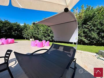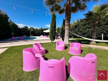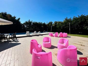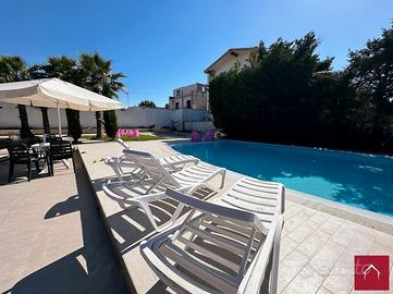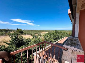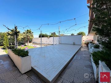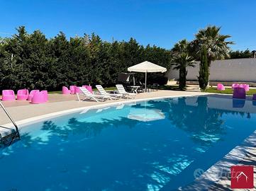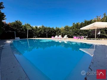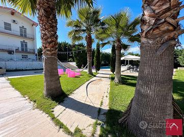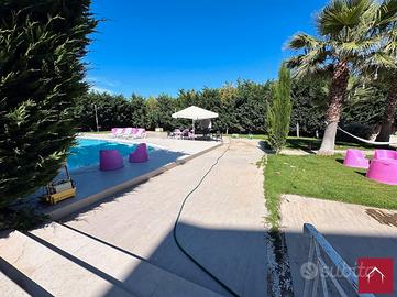 L'immobile è provvisto di cancello scorrevole ad apertura telecomandata, impianto di videosorveglianza, impianto d'allarme, impianto di irrigazione, pozzo artesiano, corrente elettrica, piscina 12*6, porte d'ingresso blindate, infissi a taglio termico con griglie di protezione anti intrusione, aria condizionata, impianti di riscaldamento autonomi e cucine con serbatoio gas metano, vasca imhoff, videocitofoni, parquet, impianto fotovoltaico con 3000euro all'anno di rendita per rivendita energia elettrica.