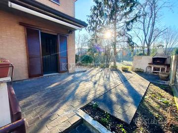 L'area esterna, di oltre 200 mq, si compone di un piacevole giardino di ingresso, della rampa per l'accesso auto e di una zona laterale/posteriore dedicata ad area barbecue e giardinaggio, confinante con il Parco Serenelle, ideale cornice di verde e tranquillità.