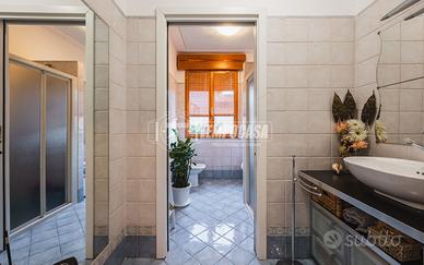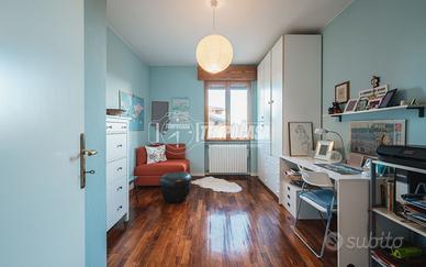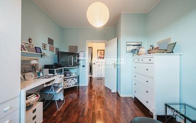 Al piano primo, la zona notte (disimpegnata) con pavimentazione uniforme in parquet, presenta due ampie camere matrimonaili con balcone di pertinenza. Una terza camera spaziosa. E un bagno finestrato con box doccia e sanitari filo parete, recentemente ristrutturato.