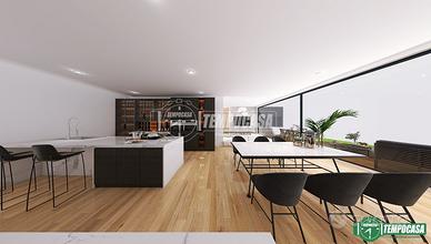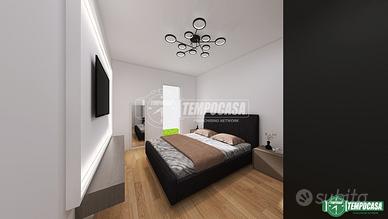 INTERNO: soluzione con ottima distribuzione degli spazi, composto da ingresso in ampio soggiorno con cucina a vista, il tutto in uno spazio di oltre 50 mq e una vetrata di 8 metri lineari. Nella zona notte troviamo un disimpegno due camere matrimoniali, una camera singola , due bagni finestrati e ripostiglio.