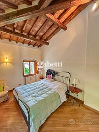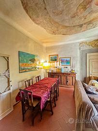Piano terra: ampio ingresso, cucina abitabile, salone con affreschi risalenti all'epoca, camera matrimoniale, camera doppia con bagno in camera, altro bagno, ampio disimpegno con ripostiglio dove è possibile installare un ascensore, altro salone con altezza massima di 6,50m con soffitti affrescati e soppalco.
