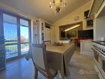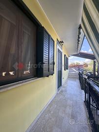 Al piano rialzato, della superficie di mq. 45 veniamo accolti da una balconata che consente l'ingresso all'interno dove troviamo una zona living, composta da un soggiorno con angolo cottura, dotato di ampia vetrata che si a