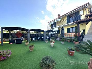 Il grande giardino è un vero e proprio paradiso, con ampi spazi verdi ed una vegetazione curata. La zona coperta con gazebo risulta perfetta per intrattenere ospiti offrendo spazio per relax, cene all'aperto e per ammirare il panorama. La piscina privata è ideale per avere momenti di svago con amici e familiari. Adiacente alla piscina, un comodo locale ed uno spazioso ripostiglio sono perfetti per riporre attrezzature da piscina ed altri accessori.