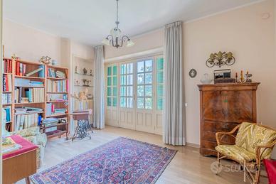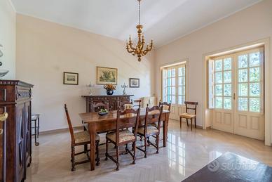 Al primo piano si accede attraverso una maestosa scalinata in marmo o da una scala privata riservata. Lingresso apre su ambienti luminosi e ariosi: un ampio salone doppio con affaccio su un balcone panoramico, un elegante studio ideale per il lavoro da remoto, una cucina abitabile con accesso diretto al balcone e una sala da pranzo accogliente per momenti di convivialità. Completa il piano un bagno, un comodo ripostiglio e una pratica lavanderia.