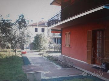 Villa bifamiliare 3piani sotto garage taverna con camino cantina legnaia piano terra cucina salone con camino bagno primo piano 3 camere con bagno tutto 210mq circa e intorno giardino