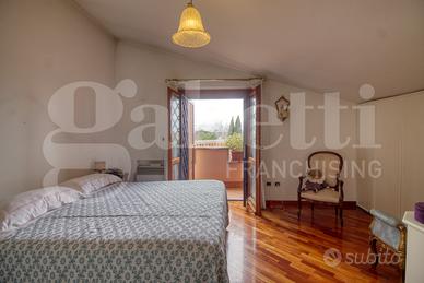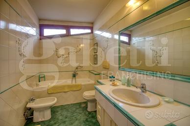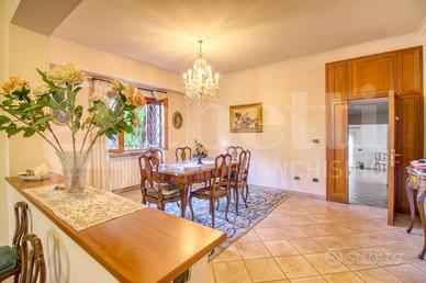 Nella parte più alta del rinomato complesso residenziale di Parco Azzurro, proponiamo la vendita di una villa bifamiliare. La villa si sviluppa su più livelli, con ambienti ampi, luminosi e perfettamente distribuiti ed è così composta: Piano seminterrato: raffinata e luminosa sala hobby con cucina e camino, bagno, ripostiglio, grande box per due auto e intercapedine; Piano terra: importante salone triplo con camino con opzione di ricavare una camera matrimoniale aggiuntiva o una sala da pranzo separata, ampia cucina abitabile con accesso diretto a un portico vivibile, bagno; Piano primo: tre camere matrimoniali di cui una con cabina armadio e bagno in suite, un secondo bagno, terrazzi. La proprietà si presenta in buono stato di manutenzione ed è impreziosita da ampi spazi esterni che assicurano privacy, comfort. Possibilità di acquisto dell'unità confinante.