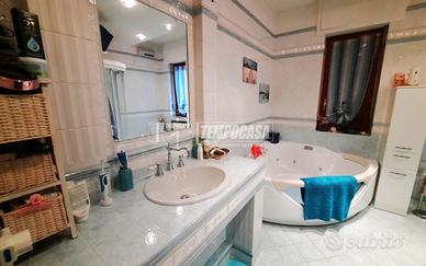 Al piano terreno si sviluppa una pratica zona di servizio composta da ampia tavernetta con camino angolare, autorimessa con capienza fino a quattro auto, cantina, locale sgombero, locale caldaia e lavanderia. Questo livello rende la casa perfetta per chi ama ricevere ospiti o necessita di spazi accessori generosi.