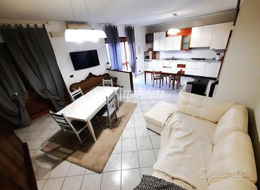 L'appartamento principale al primo piano è composto da ingresso, corridoio, cucina abitabile, soggiorno con camino, entrambi con uscita sul terrazzo vivibile, doppi servizi di cui uno con doccia e vasca idromassaggio, oltre a due camere matrimoniali, una dotata di comoda cabina armadio. Ambienti luminosi e ben distribuiti garantiscono comfort e funzionalità nella vita di tutti i giorni.