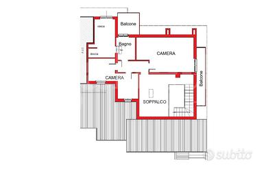 - Piano Primo: soppalco di 18 mq. che sovrasta la zona giorno, camera matrimoniale con armadio a muro e balcone, 2 locali ripostiglio comunicanti, grande bagno con doccia e vasca a filo pavimento.