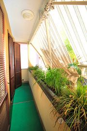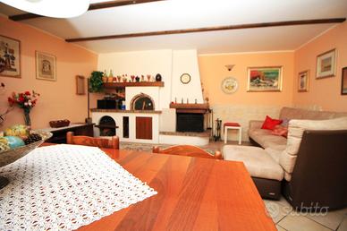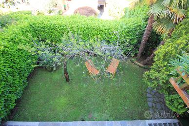 Il giardino, curato e in parte coperto, circonda l'abitazione su tre lati, offrendo privacy e spazi esterni fruibili.