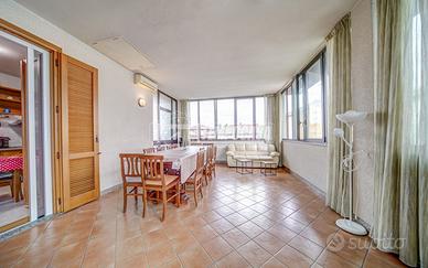 Primo piano tramite il quale si accede da una scala interna: ingresso sulla veranda di 30 mq con accesso alla cucina separata ed abitabile, ampio soggiorno, tramite il disimpegno si accede alla zona notte con due bagni, una camera matrimoniale e una camera singola di ampie metrature entrambe con balcone.