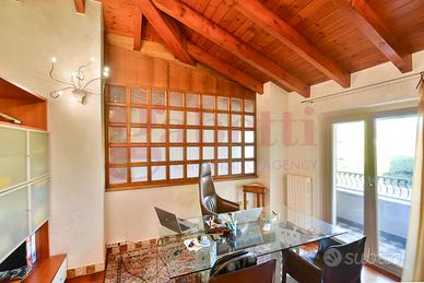 Comoda scala di collegamento che conduce al piano primo mansardato dove troviamo un ampio locale open space con un ulteriore bagno e una cameretta con accesso al terrazzo.