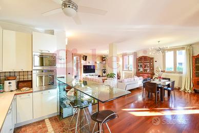 L'immobile è composto da ingresso al piano terra con luminoso soggiorno triplo e cucina a vista di 80 mq, due camere da letto spaziose, bagno ampio di 5 mq e un ulteriore bagno di 9 mq finestrato con vasca idromassaggio.
