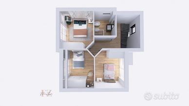 Nello specifico le unità bifamiliari, saranno composte al piano terra da soggiorno/cucina openspace e bagno, mentre nella zona notte posta al piano superiore composta da 3 camere da letto più bagno.