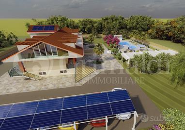 Vendiamo villa allo stato grezzo situata in contesto tranquillo e ben collegato. L'immobile si sviluppa su tre livelli, con una superficie calpestabile di circa 210 mq per piano, oltre balconi e terrazze, ed è circondato da un terreno di circa 2.000 mq.