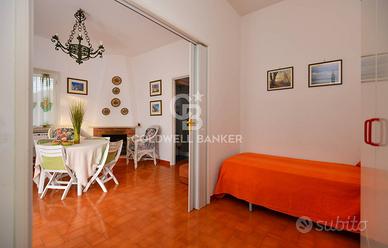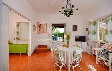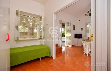La proprietà è composta da soggiorno con caminetto, due camere da letto, due bagni e una cucina abitabile da cui si accede alla veranda che si affaccia sul giardino; quest'ultimo, vivibile e spazioso, con una comoda doccia esterna, gode di zone ombreggiate dove trascorrere rilassanti pomeriggi estivi.