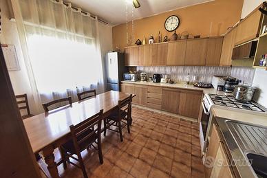 Al piano terreno insiste il primo appartamento di 3 locali con cucina abitabile oltre servizio igienico per complessivi 80 mq. circa oltre balcone di circa 8 mq;
