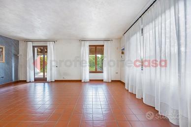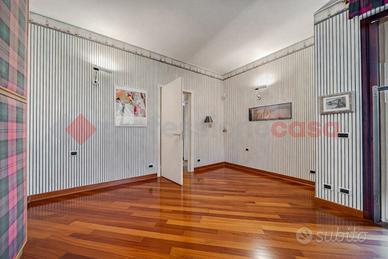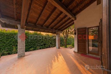 L'immobile è costituito da due appartamenti: appartamento principale piano terra costituito da 3 camere, 3 servizi, studio, ripostigli, cucina abitabile, doppio soggiorno e ampio porticato nella zona giorno, con ulteriore locale mansarda di 55mq rifinito con predisposizione bagno oltre locali sottotetto, con la possibilità di creare il terzo appartamento dato l'ingresso indipendente. Secondo appartamento al piano primo con accesso indipendente, costituito da 2 camere, doppi servizi, soggiorno e cucina abitabile accessoriate da terrazzo di 30mq ca. Entrambi gli appartamenti presentano impiantistica separata. Piano seminterrato caratterizzato da ampio taverna con cucina, zona living, servizio e locali tecnici e cantina vini. dalla zona taverna possibile accedere alla zona box di 80mq ca