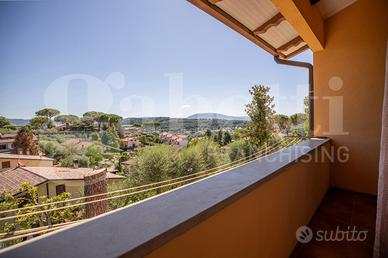 San Felicissimo - In una splendida posizione panoramica e riservata, all'interno di un contesto residenziale tranquillo e ben servito, proponiamo in vendita una raffinata porzione di bifamiliare completamente ristrutturata, libera su tre lati, con ingresso indipendente e corte esterna esclusiva. L'immobile si sviluppa su tre livelli per una superficie complessiva di circa 200 mq. All'esterno, la proprietà è arricchita da un ampio giardino privato di circa 690 mq, perfettamente curato e ideale per chi desidera vivere a contatto con la natura. Un elegante portico di circa 68 mq, perfettamente integrato con l'ambiente circostante, rappresenta lo spazio ideale per pranzi e cene all'aperto, momenti di relax o convivialità con amici e familiari. L'ingresso principale avviene tramite un portone principale, ma è disponibile anche un secondo accesso diretto dalla cucina. Il piano primo sottostrada accoglie una spaziosa cucina abitabile, un grande e luminoso soggiorno con camino in muratura, e un bagno con vasca. Salendo al primo piano si accede alla zona notte, composta da due camere matrimoniali di generose dimensioni, una delle quali dotata di terrazzo panoramico, oltre a un elegante bagno finestrato con box doccia. Il secondo ed ultimo piano ospita una soffitta abitabile, ideale come zona living o appartamento indipendente, composta da un comodo soggiorno (con predisposizione per cucina), un terzo bagno finestrato e accesso diretto a un terrazzo con splendida vista aperta su Assisi e le colline umbre. La proprietà è dotata di numerosi comfort tra cui: impianto di climatizzazione con split, infissi in legno con doppio vetro, zanzariere, inferriate di sicurezza e impianto di videosorveglianza a circuito chiuso. Completano la proprietà un locale tecnico, la possibilità di parcheggio all'interno della corte e l'opportunità di acquistare l'immobile completamente arredato, con arredi di qualità già selezionati su misura. Situata a pochi minut