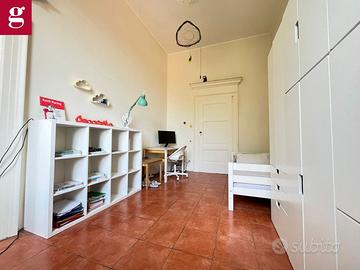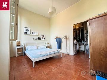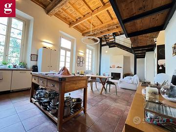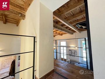Una scala interna in legno e ferro battuto conduce al piano superiore, dove si sviluppa la zona notte, composta da tre camere da letto e un bagno finestrato. Qui troviamo anche un elegante soppalco con affaccio sulla zona giorno, perfetto come studio, area relax o spazio aggiuntivo.