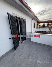 Salendo al primo piano, troverai due camere da letto, ciascuna con accesso a un terrazzo privato, ideale per godere di momenti di relax all'aria aperta. Un secondo bagno con doccia completa la zona notte, rendendo questa villa adatta anche a famiglie numerose.