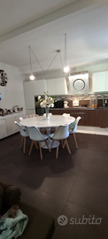 cottura con cucina a vista moderna e zona pranzo/soggiorno. Oltre anti-bagno/ lavanderia e bagno finestrato con doccia grande con seduta spa. La zona notte vi accediamo da porta centrale, in cui troviamo disimpegno, camera matrimoniale e camera media, secondo bagno finestrato con doccia doppia ed infine comodo ripostiglio. Corredato da ampio porticato esterno di buone dimensioni, comodo per pranzi e cene sia estivi che invernali grazie alla possibilità di chiuderlo con tenda in pvc dotazione. L'appartamento al p.terra è stato realizzato con vespaio ventilato con sistema igloo. Al piano primo, con accesso indipendente tramite scala esterna, troviamo il secondo appartamento. L'ingresso su soggiorno con camino in pellet e l'accesso a veranda ricavata nella terrazza panoramica di circa 70 mq a corredo dell'appartamento. Cucina abitabile con locale dispensa e con accesso a terrazzo completa la zona giorno. Zona notte con camera matrimoniale, camera doppia, bagno finestrato con doccia, oltre a soffitta ad uso ripostiglio da cui si accede tramite botola presente nel disimpegno notte. Entrambi gli appartamenti sono provvisti di aria condizionata. A corredo al piano terra troviamo attualmente 3 garage di ampia metratura, al momento usati come taverna con cucina funzionante, ripostiglio/magazzino, e un bagno di ampia metratura con doccia e zona lavanderia con accesso esterno. Tettoia comprensiva di quattro posti auto. Facciata rifatta nel 2024.